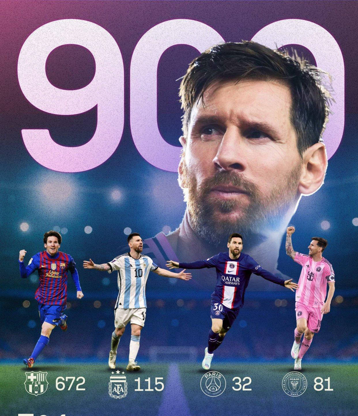 本场比赛,梅西实现了职业生涯第900个进球,这一超级里程碑意义非凡。早先面对纳什维尔时,他还刚刚达成400助攻的大关,如今将二者完美结合,把职业生涯总贡献提升到了前所未有的高度——900进球加400助攻,创造了足球历史上的绝无仅有的壮举。此外,梅西达到900进球所用的比赛场次也是历史最少,相较于另外一位著名球员C罗,梅西足足少踢了94场赛事,可见他的高效和稳定。目前,随着900进球的实现,梅西距离千球大关指日可待,更大的目标正在等待他去挑战。各界,包括多届金球奖评委、南美足球联合会以及法甲联赛官方均纷纷向他送上祝贺,彰显了这位传奇巨星不可磨灭的伟大。